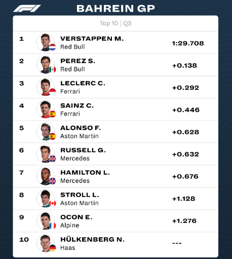 Gara e parë e këtij sezoni në kampionatin e Formula 1, do të nisë përsëri me makinat për t’u mundur, ata të kampionëve në fuqi të Red Bull, në vijën e parë. Maks Verstapen dhe Serxhio Perez kanë vendosur diktatin e tyre në provat zyrtare të Çmimit të Madh të Bahrejn për garën e nesërme që starton sezonin e ri.