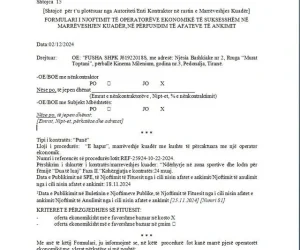 “Me anë të këtij formulari, ju informojmë se, në këtë procedurë kanë marrë pjesë operatorët ekonomikë me vlerat përkatëse si më poshtë. ‘FUSHA’ me një vlerë 530.987.260 lekë pa TVSH.