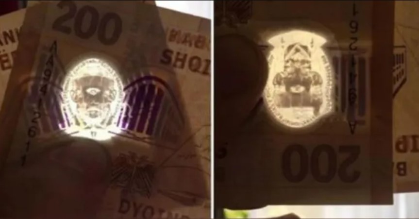 Ai ka treguar se pasi ka parë një video në ‘TikTok’ ku dy kartëmonedha angleze bashkoheshin te pjesa e tejdukshme dhe formoheshin disa figura, vendosi ta provonte edhe vetë. I riu ka marrë dy kartëmonedha 200 lekëshe shqiptare dhe kur i bashkoi te pjesa e tejdukshme u formuan disa figura të ngjashme me simbolet e iluminatit, të cilat mund t’i shihni në fotot e mëposhtme.