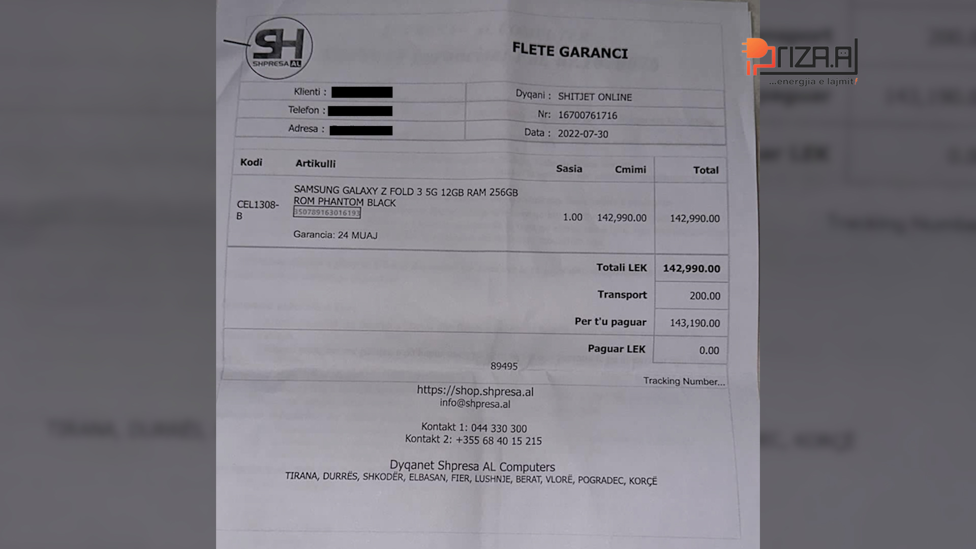 Në datë 30.07.2022 në ambientet e dyqanit “Shpresa Al” pranë rrugës së Durrësit u paraqit klienti G.Z. Prej vitesh klient i kësaj kompanie, G.Z këtë herë zgjodhi të blejë një aparat telefonit Samsung ZFold3. Një blerje e konsiderueshme prej 143,190 lek, kjo duke iu referuar faturës së blerjes.