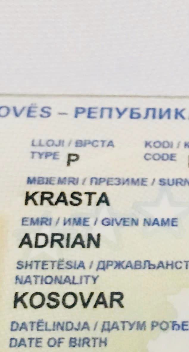 Krasta ka publikuar një foto të pasaportës së tij nga Republika e Kosovës, të cilën e ka shoqëruar me një foto të flamurit të Shqipërisë dhe një zemër të kuqe.