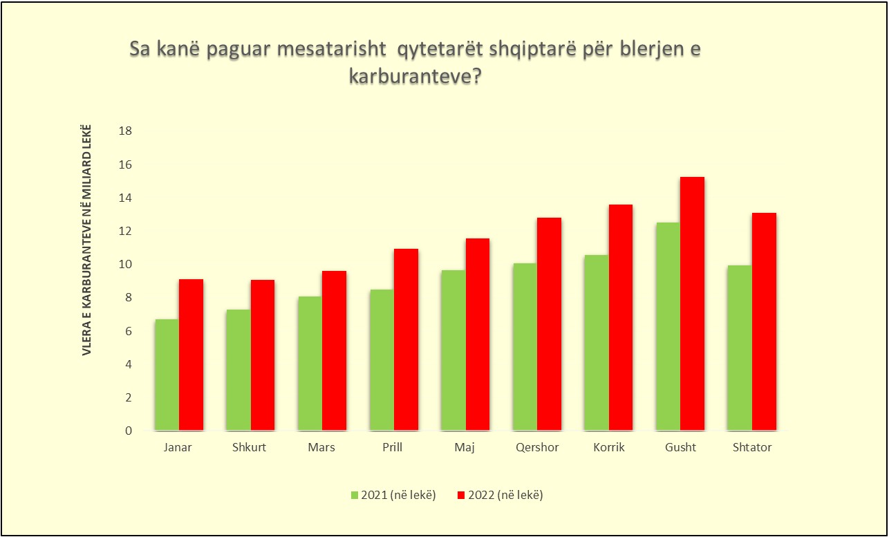 Mesatarisht, çdo muaj janë shpenzuar rreth 20 milionë euro më shumë për të blerë naftë apo benzinë, me nivelet më të larta që janë shënuar në periudhën qershor-shtator, kur dhe lëvizjet janë më të shumta për shkak të sezonit turistik.