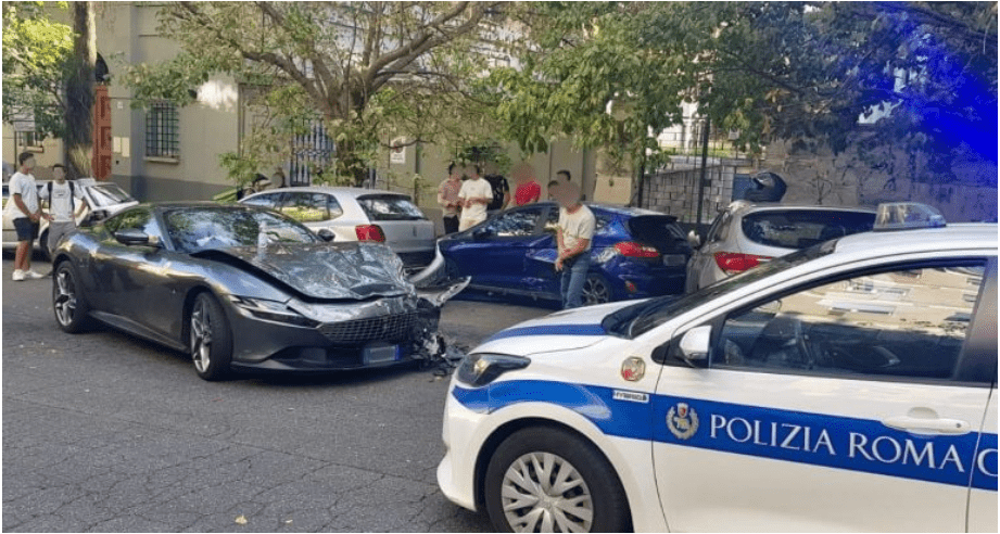Ai nuk mundi të rimarrë kontrollin dhe të ndalojë për të shmangur goditjen, kështu që pjesa e përparme e majtë e makinës u dëmtua, si dhe katër të tjerët. Në vendngjarje për zbardhjen e rastit ndodhen agjentë të policisë lokale të kryeqytetit Roma të Grupit II Sapienza, të cilët kanë kryer kontrollet e nevojshme dhe kanë dëgjuar drejtuesin e Ferrarit. Fatmirësisht nuk ka të lënduar.