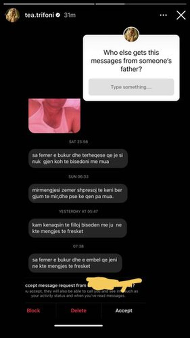 Ajo i postoi mesazhet në Instagram duke pyetur ndjekësit ‘kush tjetër pranon kësi mesazhe nga babai i dikujt?”.
