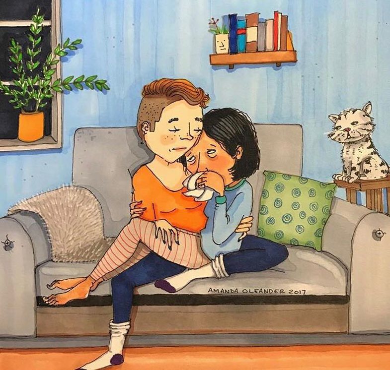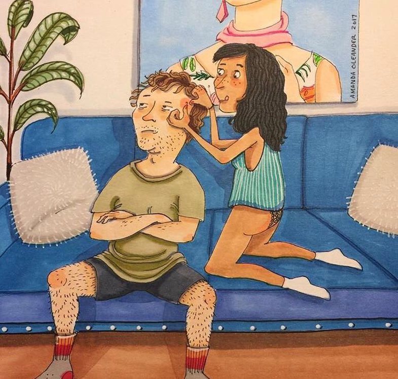 Ilustrimet janë të artistes nga Los Angeles, Amanda Oleander. Ajo njihet për ilustrimet ku vendos theksin vazhdimisht te momentet e jetës së një çifti, nga më të zakonshmet tek ato më të bukura. “Unë pikturoj vazhdimisht çastet që nuk i shohim. Jam e magjepsur nga mënyra si njerëzit sillen pas dyerve të mbyllura,” ka thënë ajo për Insider.
