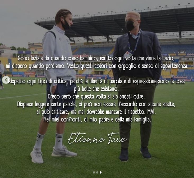 “Duhet të vdesësh, ti e babi yt. Copa m… Jeni kanceri i Lacios. Ai babai yt i paaftë. Jeton akoma ai vdekësira, babai yt. Na e shpifni, si ti, ashtu edhe babai yt. Nëse nuk merrni as Zakanjin. Flini me një sy hapur se nëse e kap ndonjë lacial, do i fusë thikën”, ishte kërcënimi më i fundit që kishte marrë Etien Tare në rrjete sociale.