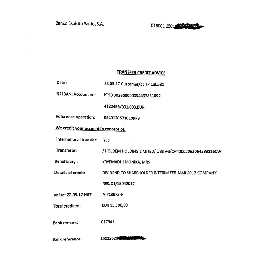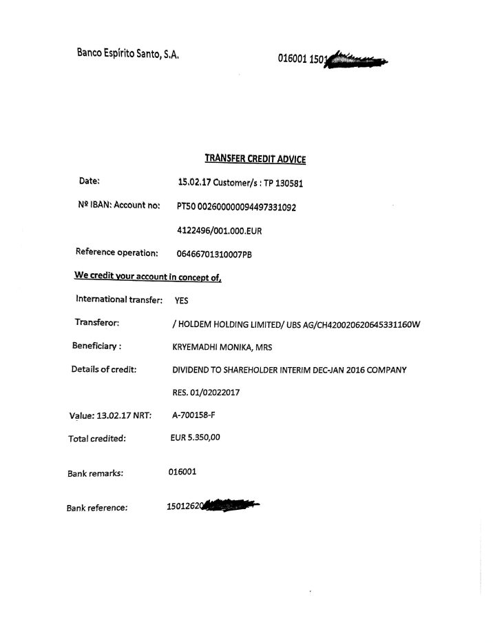 Siç përshkruhet në dokumente, referencat e pagesës përfshijnë ‘dividend për aksionarët’ dhe ‘shërbimet e marketingut’.