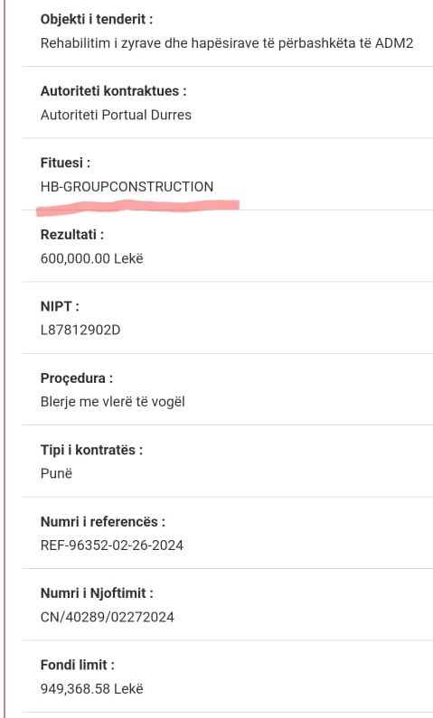 - Garën e tretë e ka fituar HB- GroupConstruction me aksioner Bledar Hysa