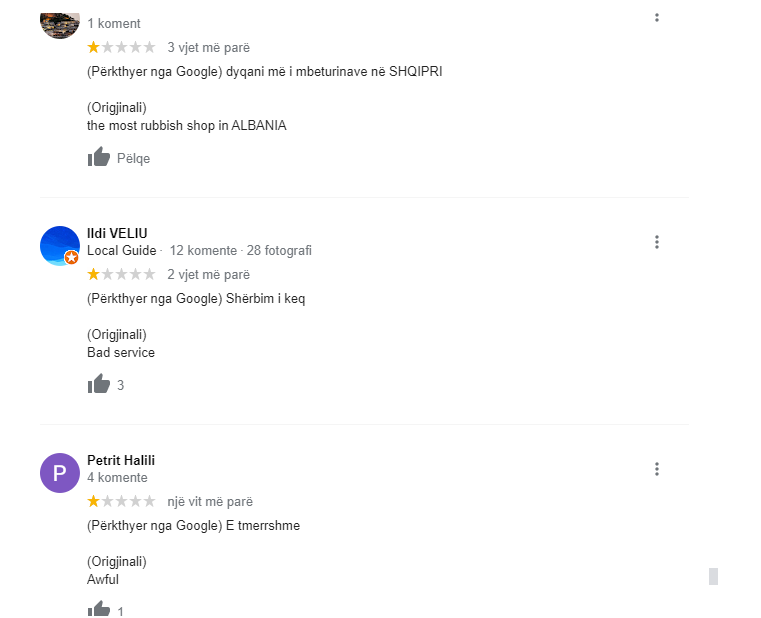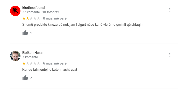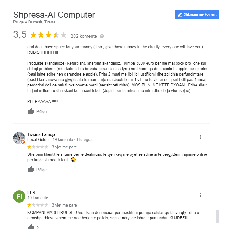 “KOMPANI MASHTRUESE. Une i kam denoncuar per mashtrim per nje celular qe bleva qty…dhe u demshperbleva vetem me nderhyrjen e policis, sepse ndryshe ishte e pamundur. KUJDES!!!”