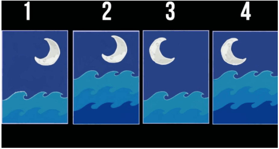 Natyrisht, në secilën nga 4, ka të paktën 1 detaj që e dallon atë nga pjesa tjetër: për shembull, hëna mund të jetë më shumë në të majtë ose në të djathtë të fotografisë, ose vala mund të jetë më e madhe ose më e vogël.