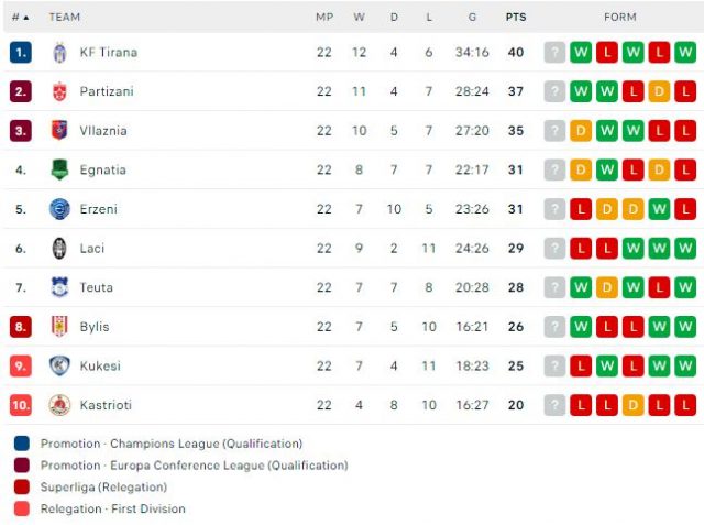Sfida e fundit për sot do të jetë Erzeni-Laçi e cila do të luhet në orën 16:00. Erzeni ndodhet në vendin e pestë me 31 pikë, ndërsa Laçi në vendin e gjashtë me 29 pikë. Të dyja ekipet ndodhen në një formë pothuajse të njëjtë dhe favoriti do të jetë i vështirë për t’u deklaruar.