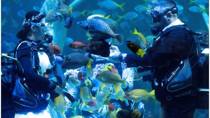 VIDEO/ Të çmendur apo guximtarë? Çifti martohet në akuariumin me peshkaqenë