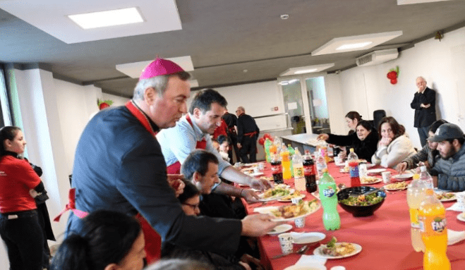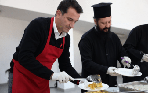 Periudha e festave / Veliaj dhe Imzot Arjan Dodaj shërbejnë drekën për njerëzit në nevojë