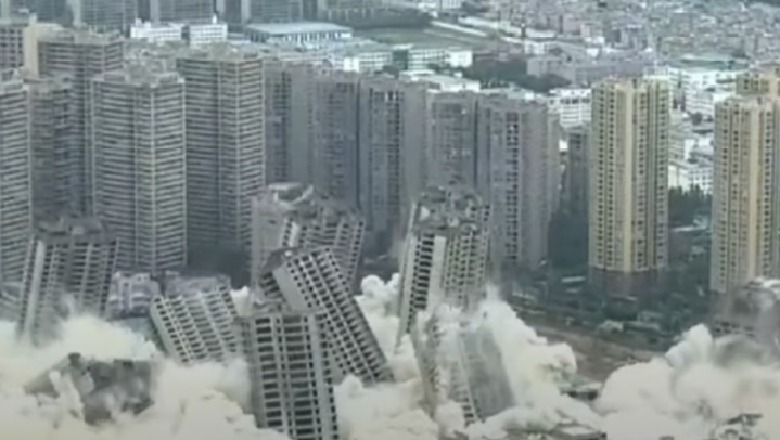 VIDEO/ Nuk do u besoni syve, 15 qiellgërvishtëse shemben njëkohësisht me eksploziv në Kinë