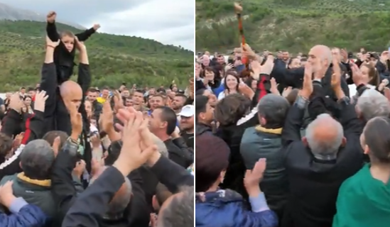 Me fëmijë në krahë dhe bastun në dorë/ Rama fushatë në Memaliaj nën ritmet e tallavasë
