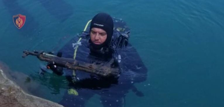 Dalin pamjet e arrestimit të autorëve të grabitjes së bankës, momenti kur polici nxjerr armën nga uji