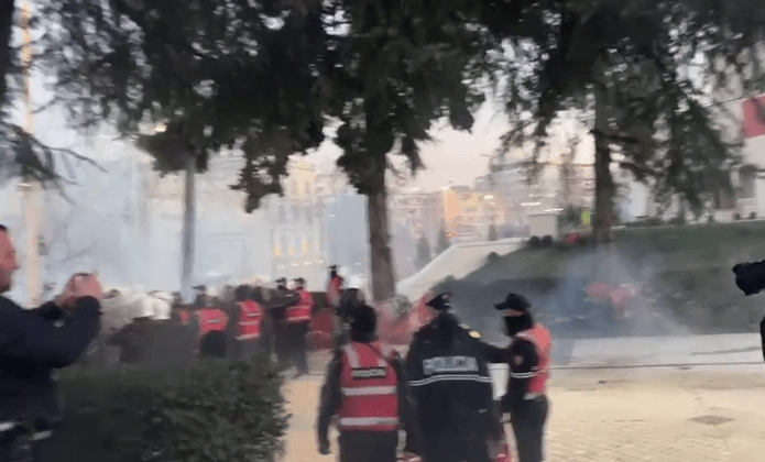 Hedhja e lëndëve piroteknike gjatë protestës; dëmtohen tre efektivë policie