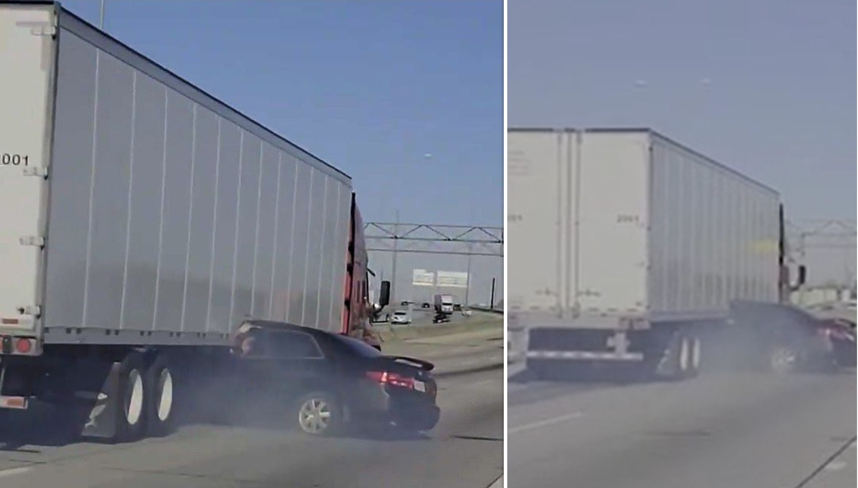 Video/ Kamioni tërheq zvarrë makinën, pamjet e frikshme të aksidentit!