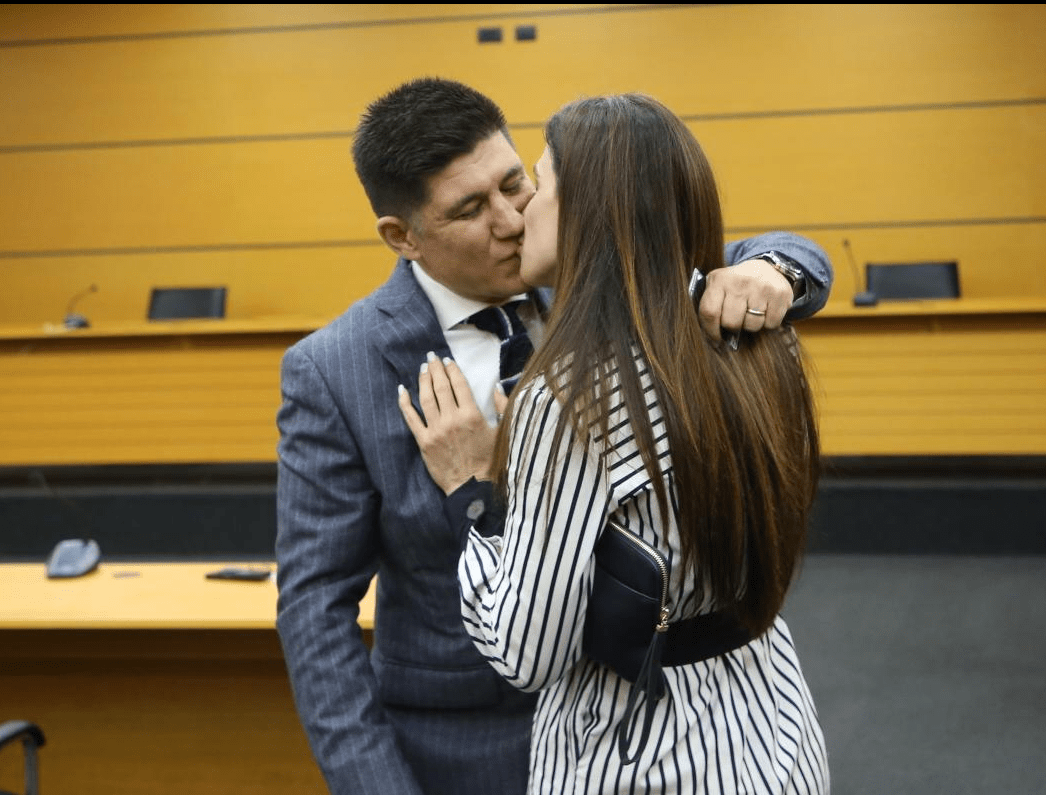 Foto-Lajm/ Pasi kaloi vettingun, prokurori i Krujës “ekzaltohet” dhe puth në buzë partneren në sallë
