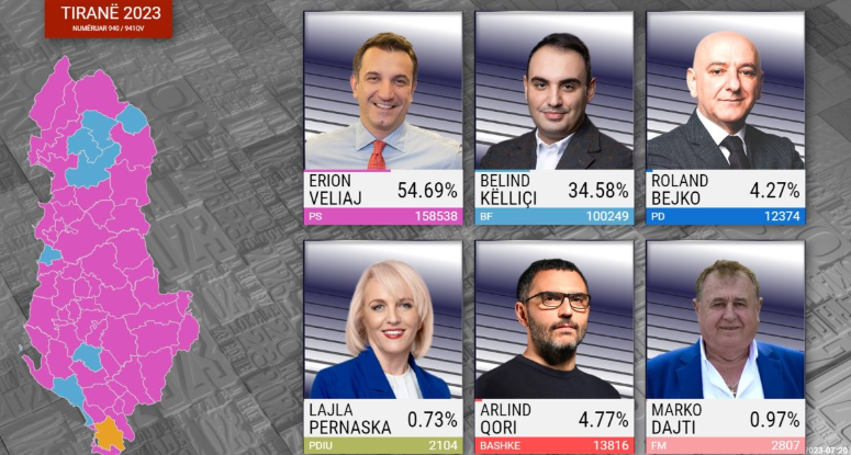 Erion Veliaj udhëheq garën në Tiranë, ndiqet nga Belind Këlliçi, Arlind Qori merr më shumë vota se Roland Bejko
