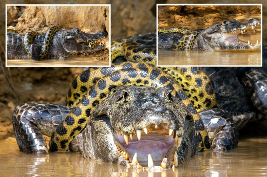 FOTO/ Beteja epike për mbijetesë mes anakondës gjigante e krokodilit. Po cili prej dy grabitqarëve mbijetoi…