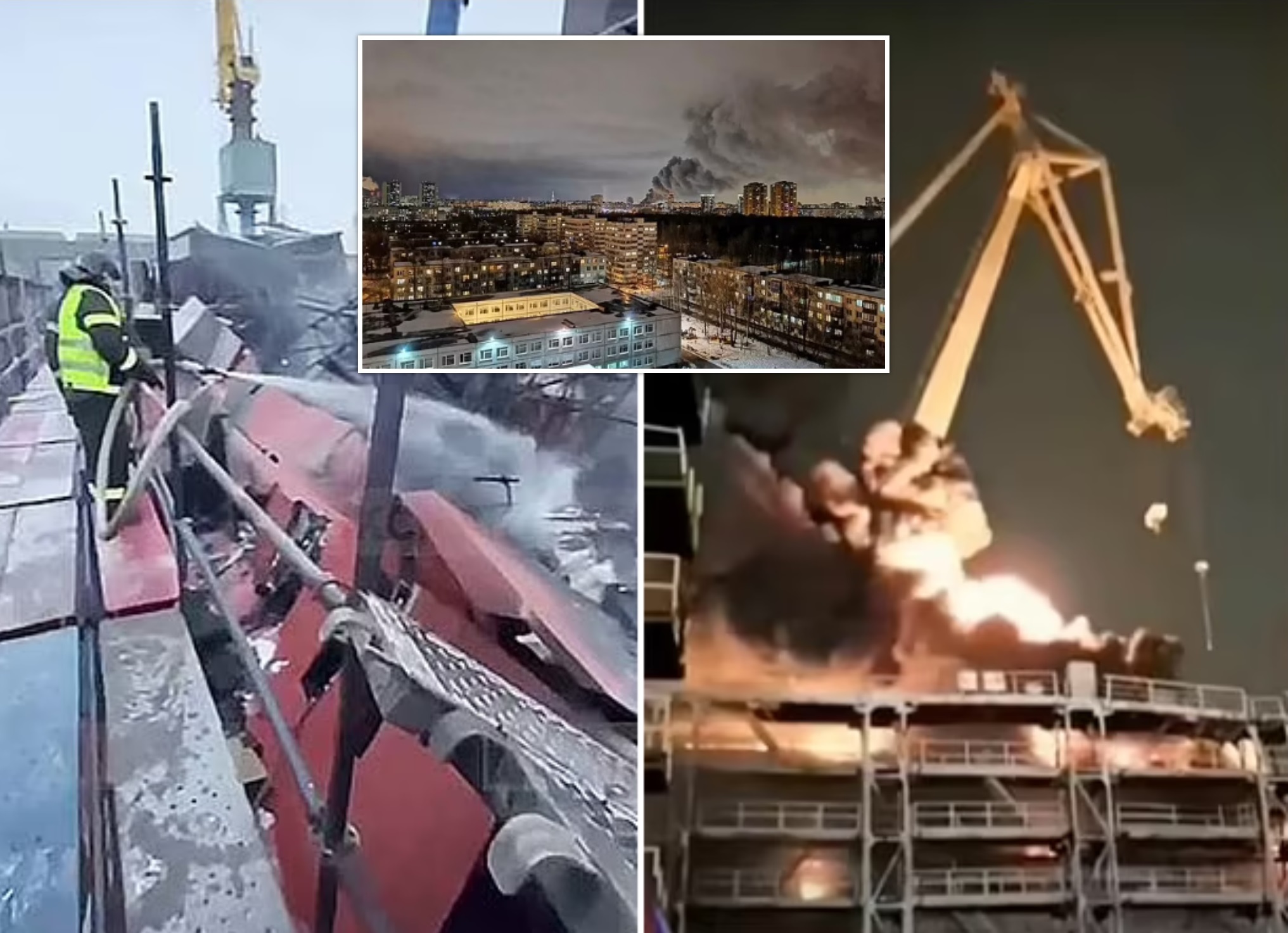 FOTO+VIDEO/ Zjarri përfshin luftanijen e re ruse anti-radar, shtëllunga masive tymi mbi Shën Petersburg