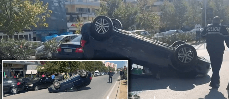 Aksident i frikshëm te ‘Kthesa e Murrashit’, makina humb kontrollin dhe përmbyset në mes të rrugës