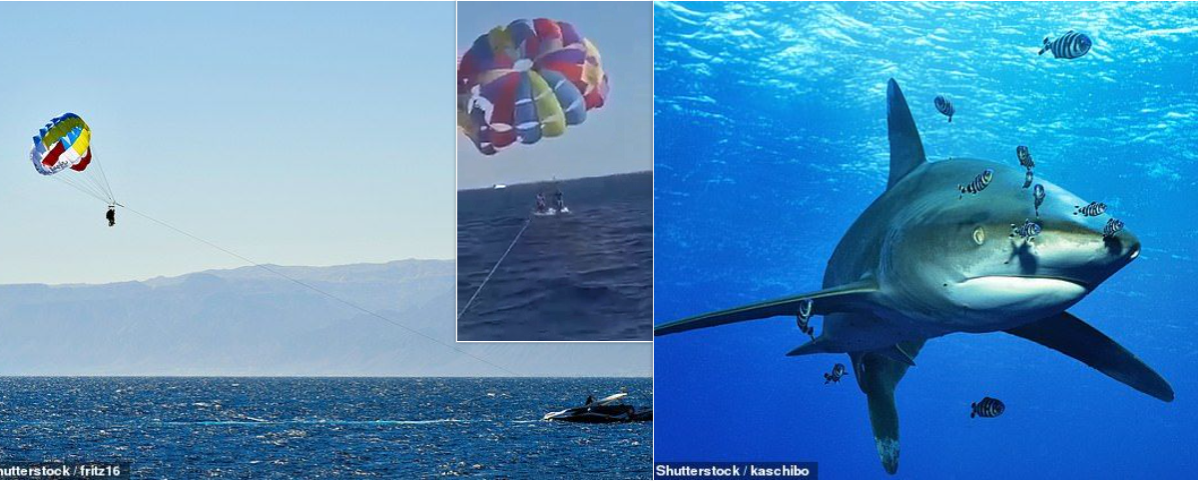 VIDEO/ E frikshme si në filma… Parashuta bie mbi det, peshkaqeni kërcen dhe kafshon turistin në këmbë