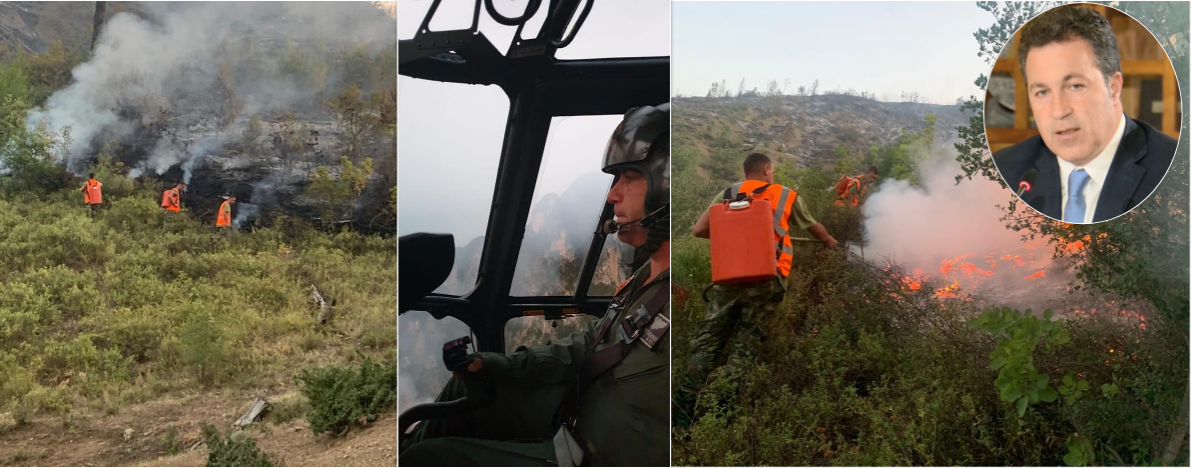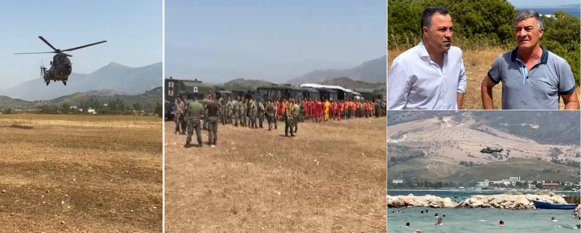 FOTO+VIDEO/ Karaburuni vijon të shkrumbohet nga flakët, Ministria e Peleshit rreshton 500 efektivë të FA-së me 50 mjete… sa për poza