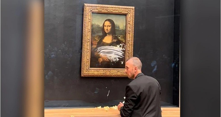 Video/ Nuk gjen “paqe” Mona Liza, burri i maskuar e lyen me krem torte