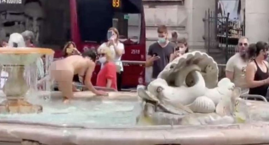 VIDEO/ Temperatura ‘detyron’ turisten të zhvishet nudo në mes të rrugës dhe të lahet në shatërvan