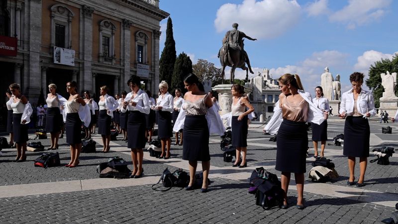 FOTO+VIDEO/ Mbetën pa punë se falimentojë kompania, kjo ishte protesta origjinale e stjuardesave ne mes të Romës