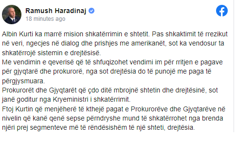 Haradinaj: Kurti ka marrë mision shkatërrimin e shtetit