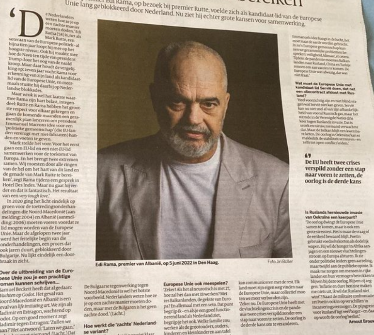 Rama intervistë për “De Volkskrant”: Kini shumë kujdes dhe mos pyesni…! Sebia nuk mund të heqë qafe shpejt…