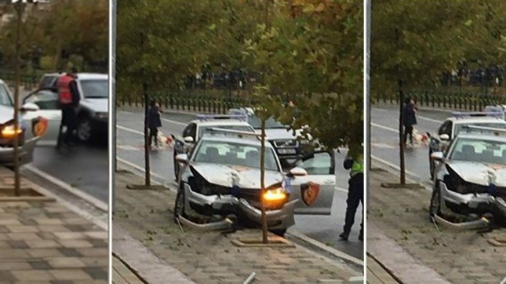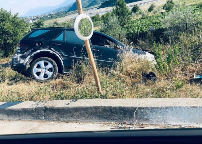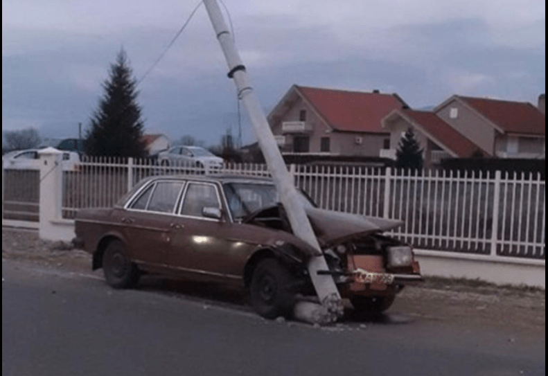 FOTOLAJM/ Shkodër, ‘Mercedes-Benzi’ përplaset me shtyllën e lënë në mes të rrugës… pas zgjerimit