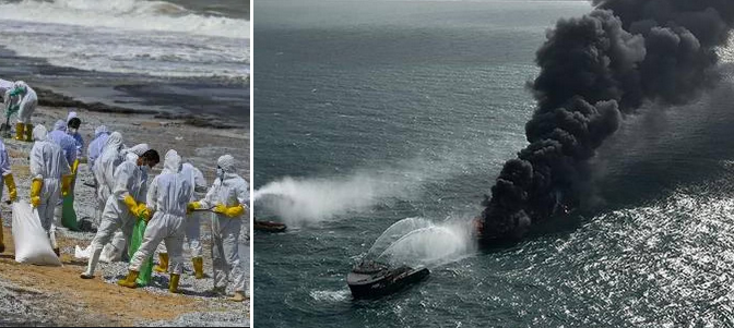 FOTO/ Katastrofë mjedisore në brigjet e Sri Lanka-s, cisterna e djegur nis fundosjen