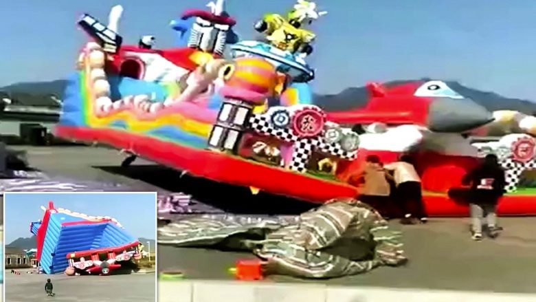 Video/ Erërat e forta ngrejnë në ajër kështjellën bashkë me fëmijët, prindërit turren ta kapin! 6 të lënduar