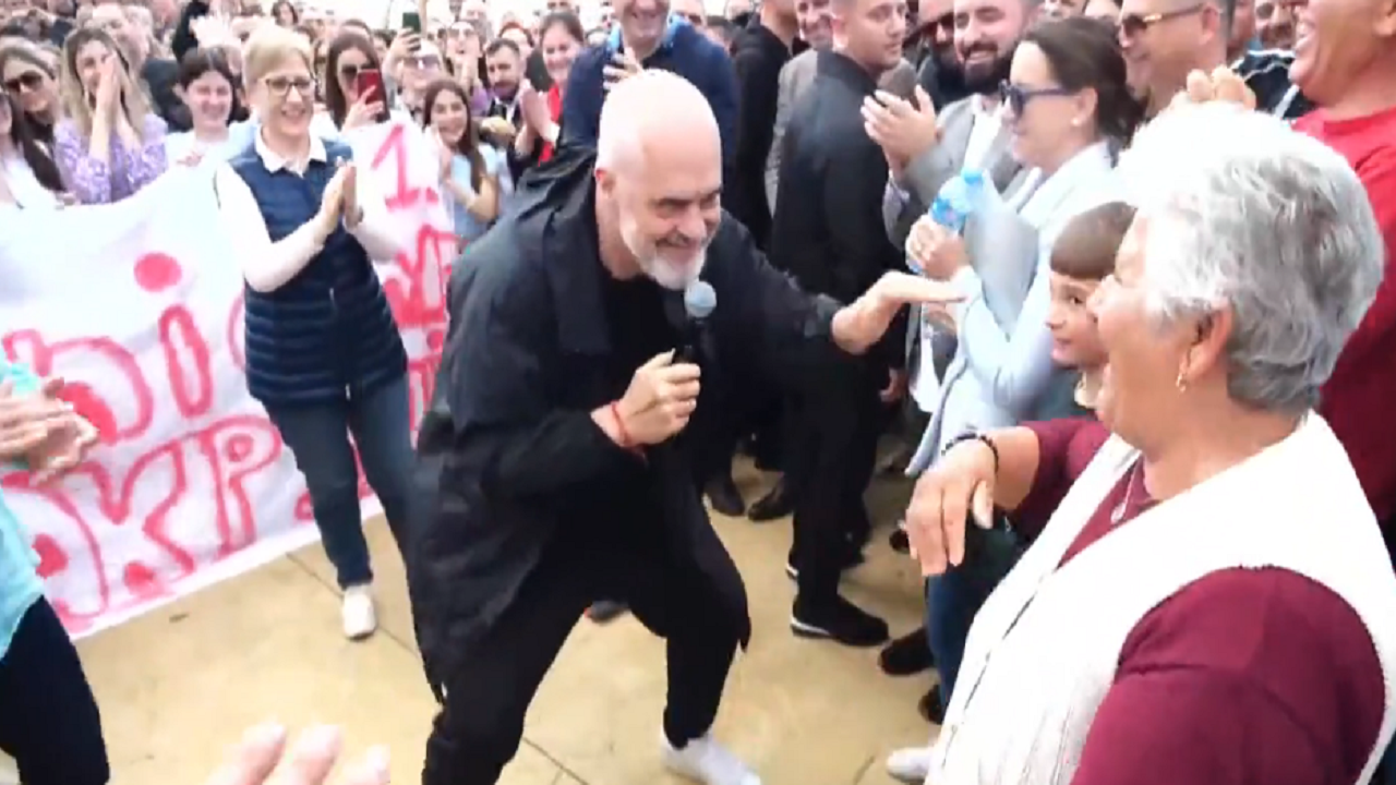 Me fëmijë në krahë dhe bastun në dorë/ Rama fushatë në Memaliaj nën ritmet e tallavasë