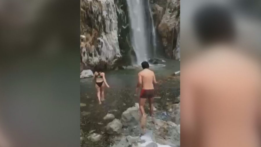“Nuk e bëmë për të tërhequr vëmendjen”/ Të rinjtë ‘sfidojnë’ temperaturat ekstreme dhe lahen në ujëvarën e Grunasit