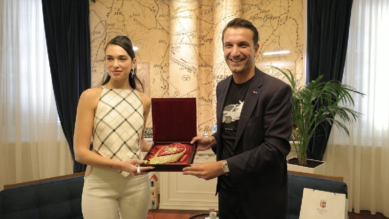 Dua Lipa vjen në Tiranë dhe takohet me kryebashkiakun Veliaj, shkëmbejnë dhurata simbolike