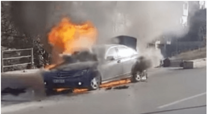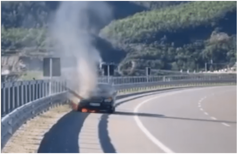 Shpërthen në flakë automjeti në autostradën Tiranë-Elbasan