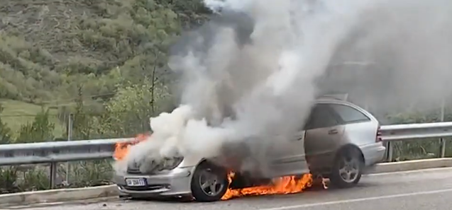Video/ Digjet makina në aksin Tiranë-Elbasan, shikoni se si shkrumbohet!