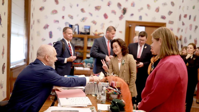 Foto/ “Miqësi e partneritet që po forcohet dita-ditës”/ Rama pret në zyrë senatorët amerikanë dhe ambasadoren Yuri Kim