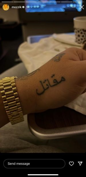 Reperi Gramoz Aliu, i njohur me emrin e tij të artit Mozzik, ka qenë mjaft i përfolur së fundmi pas publikimit të këngës së re dedikuar vajzës së tij Hana. Mozzik është aktiv në rrjetet sociale ku lajmëron ndjekësit për projektet muzikore dhe koncertet e tij, por së fundmi ajo që ka preferuar reperi të ndajë me ndjekësit është diçka e veçantë. Bëhet fjalë për një tatuazh të ri, të cilin reperi e ndau në ‘Instastory’. “Luftëtar”, është kuptimi i tatuazhit, e shkruar arabisht në dorën e tij.