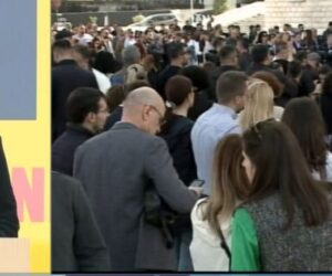“Ndiq këngëtaren më të mirë, Doruntina Shala, Tayna,”– shkruhet në posterin e ngjitur në makinë.