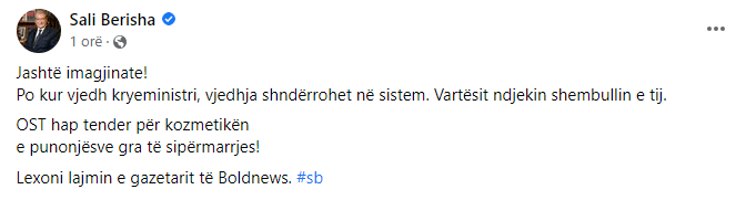 Përmes një postimi në ‘Facebook’, Berisha shkruan se kjo vjedhje është jashtë çdo imagjinate.