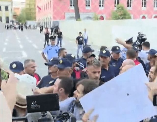 Është tensionuar protesta që po mbahet në këto momente përpara kryeministrisë, ku protestuesit janë përplasur fizikisht me policinë.