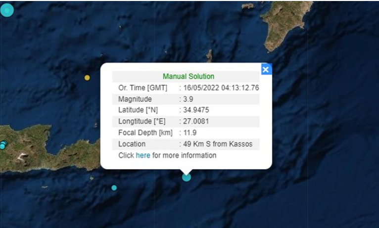 Mediat greke raportojnë se epiqendra ka qenë 44 kilometra në jug të Kassos, si dhe thellësia ishte 11.9 kilometra.