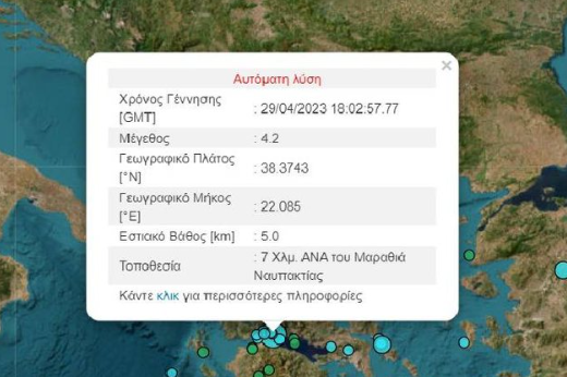 Sipas të dhënave të Institutit Gjeodinamik të Observatorit Kombëtar të Athinës, epiqendra e tërmetit ndodhet 7 kilometra lindje-juglindje të Marathia Fokida.