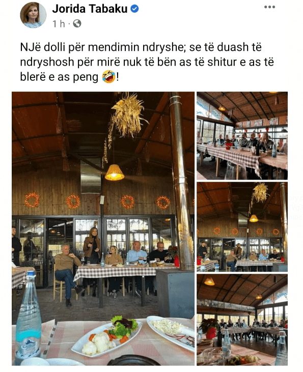 Deputetja e Partisë Demokratike Jorida Tabaku, nëpërmjet një postimi në rrjetin social “Facebook” ka publikuar foto nga dreka me ish-kryeministrin Sali Berisha dhe dhjetëra deputetë të tjerë të Partisë Demokratike.